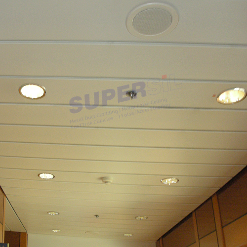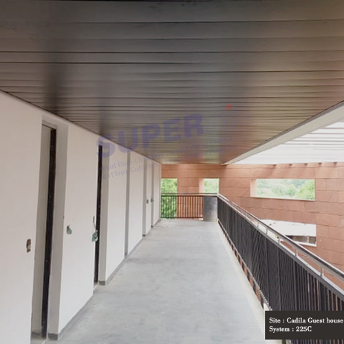 The Carrier is fixed with Grid Accessories at the required spacing and has a present location for Panel Sequence. Powder-coated 75/150/2225C Panels are then easily connected to the carrier. The system has been designed to maximize design flexibility while maintaining ease of installation.Supersil makes 75 / 150 / 225C bevel edge panels with a mini V grove made out of Alu. / GS of 75 mm wide x 15.5 mm deep x length up to 5mtrs. pre-coated with Alu. / GS Carrier of 32 mm wide x 39 mm deep x 0.6 mm thick with protruding ears to hold the panels in a module of 75, 150 & 225 mm center to center at a distance of a maximum 900mm to 1mtr.