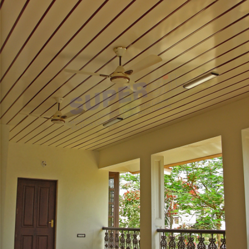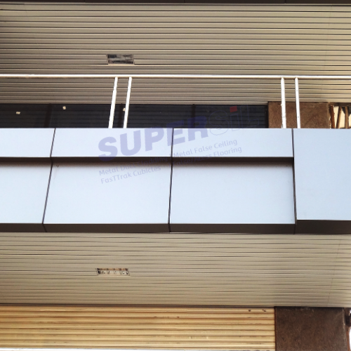 Supersil makes 84 R Round edge panels made out of Alu. / GS of 84mm wide x 15 mm deep x length up to 5 meters. with Powder Coated in standard colors, fitted on Alu. / GS carrier of 28 mm wide x 43 mm deep x 0.4 5 mm thick with protruding ears to hold the panels in a module of 100 mm Centre to Centre at a distance of a maximum 1.2 to 1.5 meter.