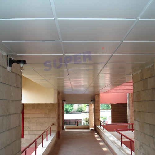 Supersil make Panels shall be fabricated from 0.50mm thick (TCT) Galvanized sheet and Powder Coated on the external surface shall have flange on all four sides to rest on the exposed grid system to give 600 mm * 600 mm centre to centre of “T”.